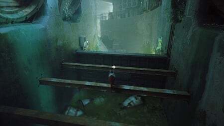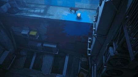 왔던 길을 그대로 둡니다. 오른쪽에는 다른 아웃사이더 기호가 보이는 더 높은 건물이 있습니다. 거기에 가려면 파이프를 따라 이전에 있었던 옥상으로 다시 걸어가십시오. 페인트 던지는 로봇을 지나 다음 건물로 걸어가세요. 옥상에서 전원 장치를 꺼내 팬이 회전하지 않도록 합니다. 안으로 들어가면 상자가 몇 겹 보입니다. 그들 위에 뛰어 올랐다가 다시 내리면 넘어져 즈발타자르의 노트북이 드러납니다. 블라인드를 긁어서 열고 창문을 통해 뛰어내립니다.