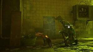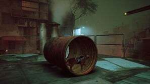 챕터가 시작되면 부상을 당하고 기절하기 전에 몇 초 동안만 비틀거릴 수 있습니다. 컷신이 재생되고 깨어나면 정상으로 돌아가고 큰 문이 열립니다. 오른쪽 문으로 걸어가세요. 반대편을 지나 오른쪽 울타리 근처에 쓰레기통이 있습니다. 그것을 사용하여 금속 천막을 타고 울타리 반대편으로 넘어갑니다. 계속 앞으로 가다가 깜박이는 표지판에서 왼쪽으로 방향을 틀면 됩니다. 계단 아래에는 물에 떠 있는 몇 개의 배럴이 있습니다. 이것들을 가로질러서 체인링크의 틈을 통해 오른쪽으로 가십시오.
