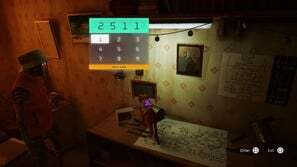 구석에 있는 책상 위로 뛰어올라라. 걸려있는 모든 사진을 쓰러뜨릴 수 있습니다. 가장 오른쪽에 있는 그림을 아래로 내리면 "Time Will Tell"이라는 단서가 나타납니다. 반대편 벽에는 4개의 시계가 있습니다. 2시, 5시, 1시, 1시를 읽습니다. 다음으로 가장 왼쪽에 있는 그림을 아래로 내리면 키패드가 나타납니다. 암호 2511 을 입력하면 비밀 연구소의 문을 열 수 있습니다.
