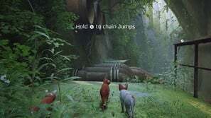 오른쪽으로 내려가서 계속 진행합니다. 바닥에 작은 틈이 있는 나뭇잎으로 덮인 벽에 도달하게 됩니다. 이 틈을 지나 반대편으로 가시면 됩니다. 다음은 건너야 하는 매달린 대들보입니다. 완료되면 다른 컷신이 재생됩니다. 챕터가 완료되었습니다!
