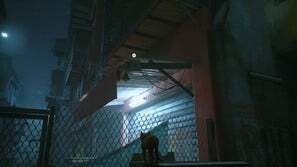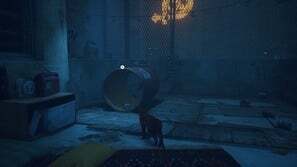 챕터가 시작되면 부상을 당하고 기절하기 전에 몇 초 동안만 비틀거릴 수 있습니다. 컷신이 재생되고 깨어나면 정상으로 돌아가고 큰 문이 열립니다. 오른쪽 문으로 걸어가세요. 반대편을 지나 오른쪽 울타리 근처에 쓰레기통이 있습니다. 그것을 사용하여 금속 천막을 타고 울타리 반대편으로 넘어갑니다. 계속 앞으로 가다가 깜박이는 표지판에서 왼쪽으로 방향을 틀면 됩니다. 계단 아래에는 물에 떠 있는 몇 개의 배럴이 있습니다. 이것들을 가로질러서 체인링크의 틈을 통해 오른쪽으로 가십시오.