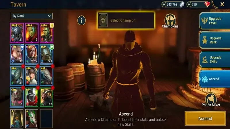 마지막으로, 캐릭터 레벨링의 중요한 부분은 Raid Shadow Legends에서 챔피언의 순위를 매기는 방법을 아는 것입니다. 이것이 작동하는 방식은 주요 챔피언이나 원하는 다른 챔피언의 순위를 올리기 위해 일부 음식 챔피언(이 시점에서 스페이드에 있을 가능성이 높음)을 희생하는 것입니다.