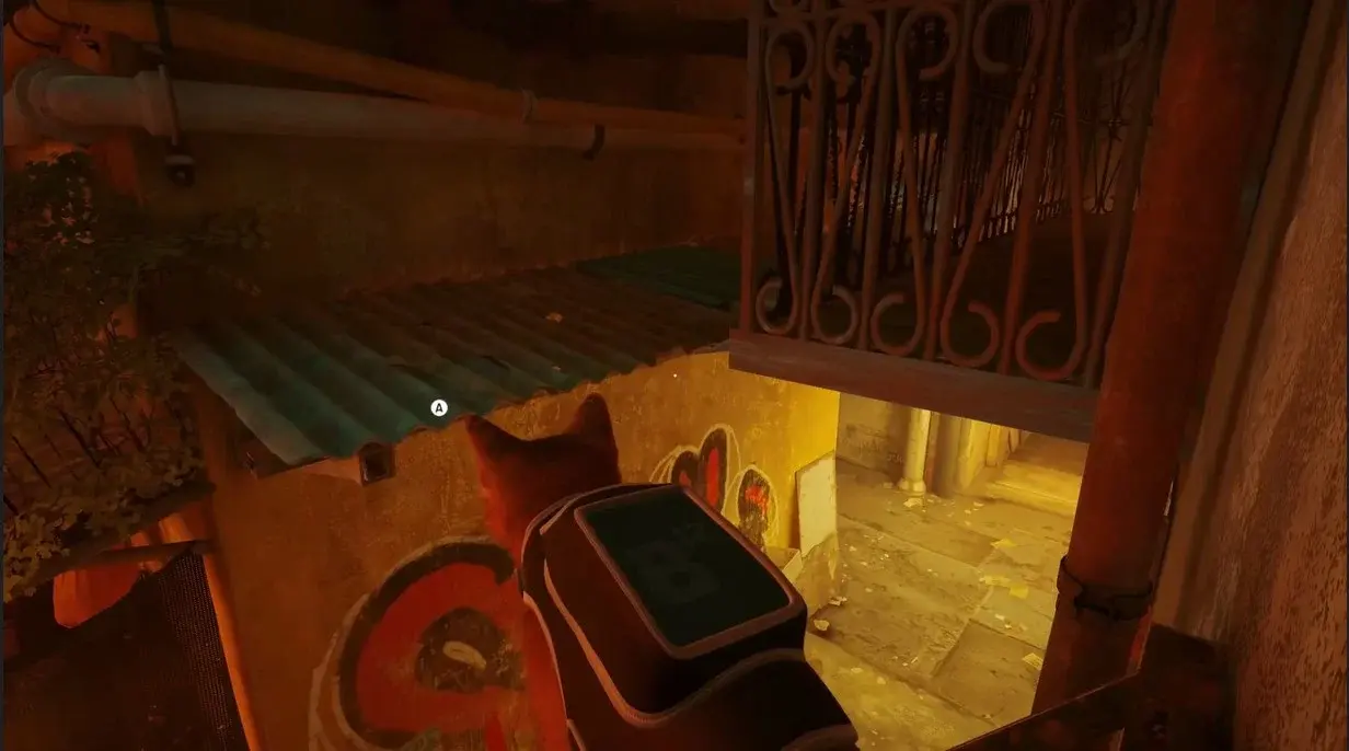 세 번째 자판기의 경우 Stray에서 약간의 등반을 해야 합니다. 슬럼의 지붕을 통과할 때 상황이 더 수직이 되기 시작할 것입니다. 두 번째 흰색 자판기에서 왼쪽으로 가세요.