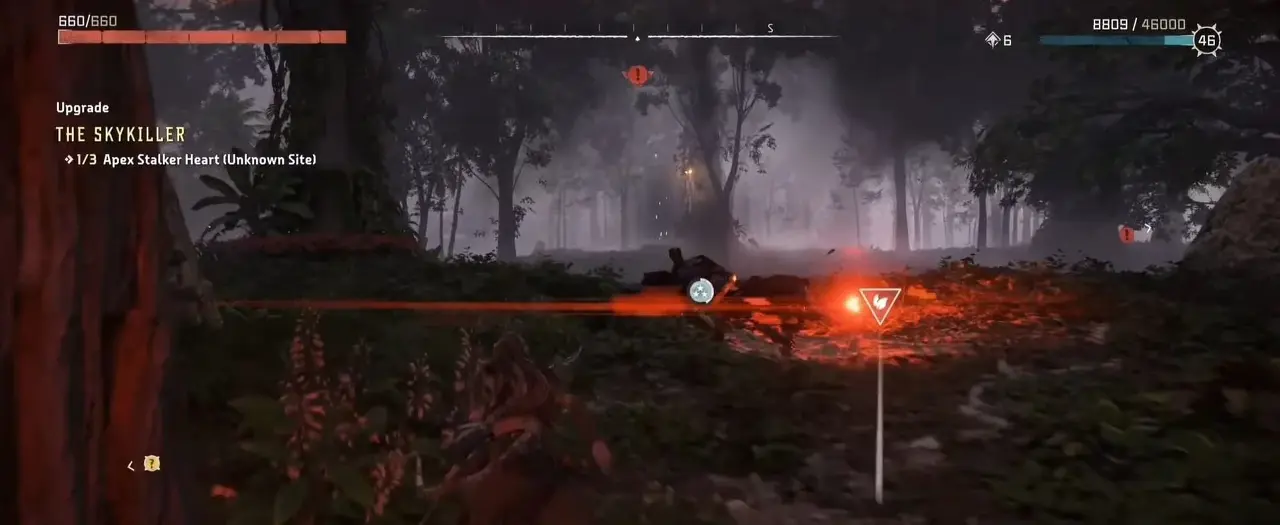 Horizon Forbidden West 의 전설적인 Skykiller 와 같은 무기 가 그것을 물리치는 데 도움이 될 것입니다. 임무를 완료하면 정글에 들어가 이 잔인한 기계를 처리할 수 있습니다. 그들은 나무 사이에 위장하여 그들을 찾는 것은 꽤 악몽이 될 수 있습니다. 플레이어는 Apex Stalker가 떨어뜨린 폭탄이 흩어져 있으므로 숲을 조심스럽게 이동하는 것이 좋습니다.