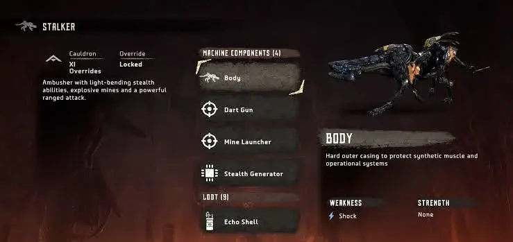 Apex Stalker가 보유하고 있는 구성품은 다음과 같습니다. 그 동안 Horizon Forbidden West에서 다이빙 마스크를 얻는 방법 에 대한 가이드를 읽어보십시오 .