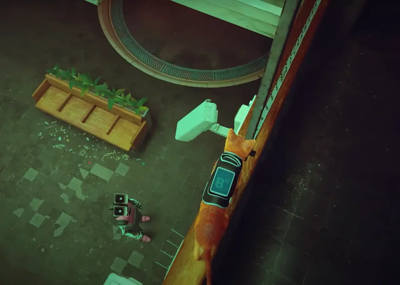 난간을 올라간 다음 보안 카메라가 부러질 때까지 빠르게 뛰어올라 스트레이 카세트 테이프 가 거의 당신의 것입니다!
