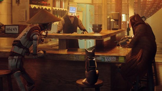예상하시겠지만, 심술궂은 가게 주인인 오지가 경비를 서고 있는 동안 그냥 걸어 들어가 Stray 작업자 재킷을 입을 수는 없습니다. 이것은 주의를 산만하게 하고, 가게 뒤에 있는 탈의실에 있는 거대한 붐 박스는 완벽한 기회를 제공합니다. 지금은 비어 있지만 Midtown에 로봇 그룹이 있어 이를 도와줄 수 있습니다.