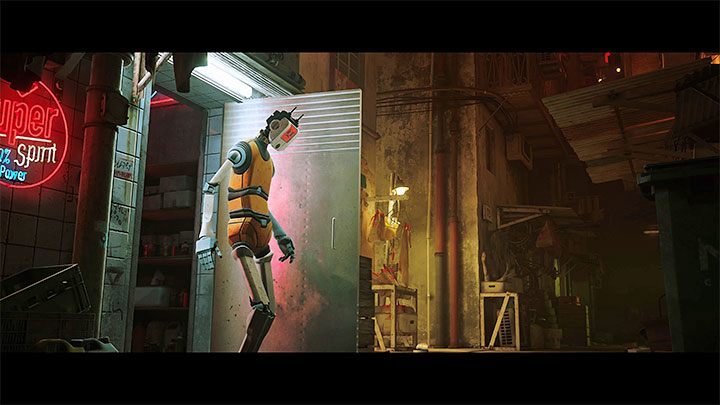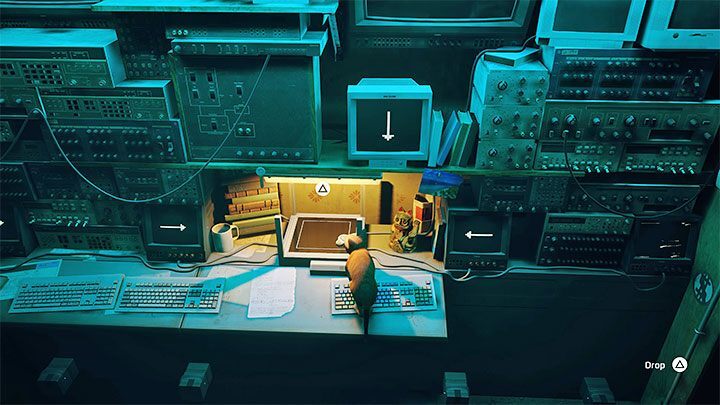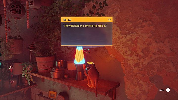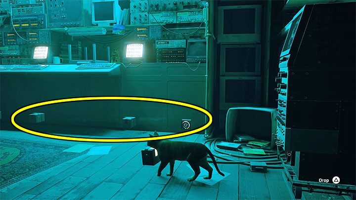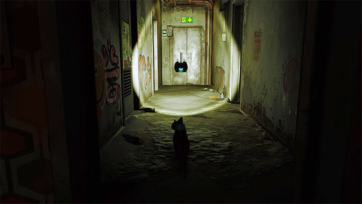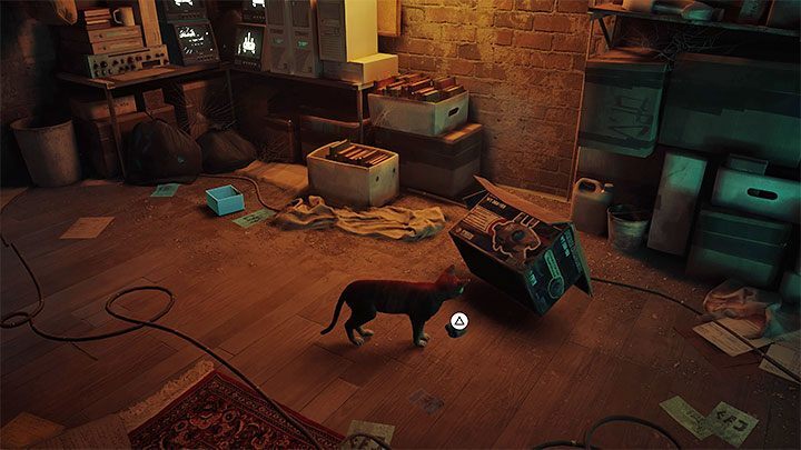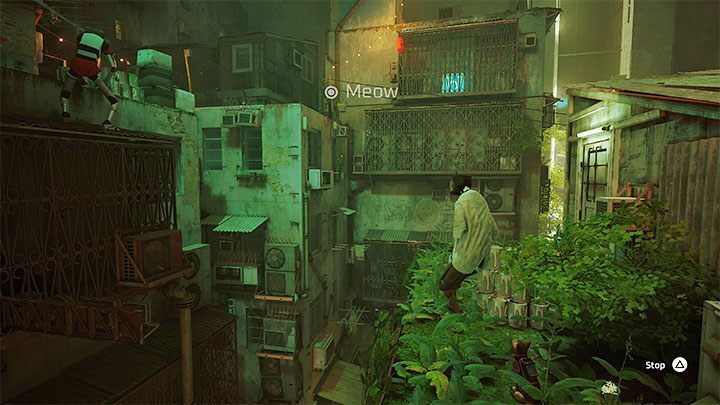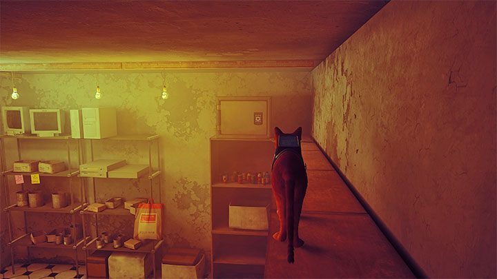 세탁실 옥상에는 로봇 2대가 있고 그 중 한 대는 페인트 통을 던지고 있습니다. 당신은 그것을 던질 때 그것을 산만하게 하고 야옹해야 합니다 . 한 번일 필요는 없습니다. 연속으로 여러 번 야옹을 하면 확률을 높일 수 있습니다.