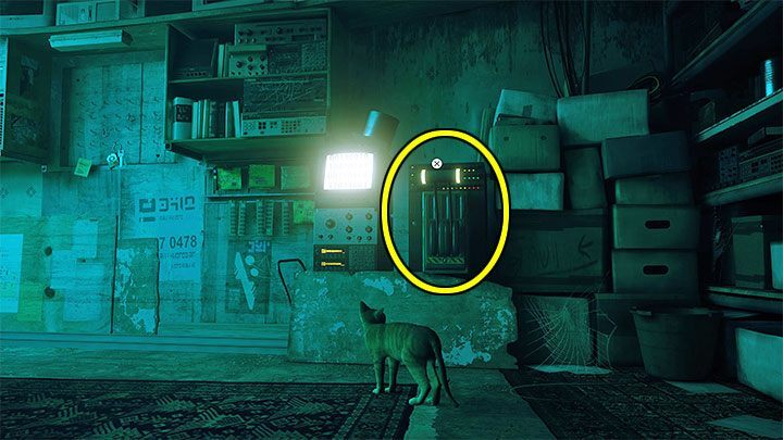 고양이 배지 를 얻으려면 코드를 열어야 합니다. 이것은 수집품 중 하나입니다. 금고는 상점 중 한 곳 뒤에 있습니다. 코드는 8542 입니다.