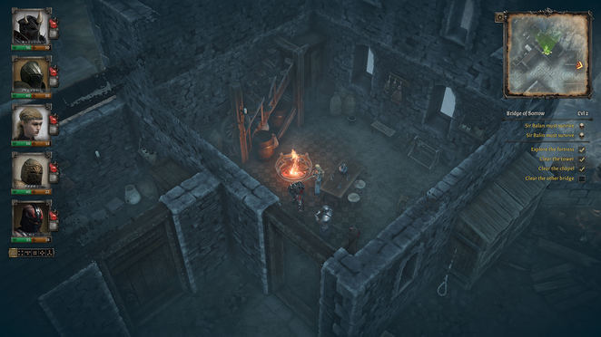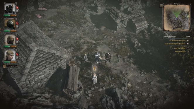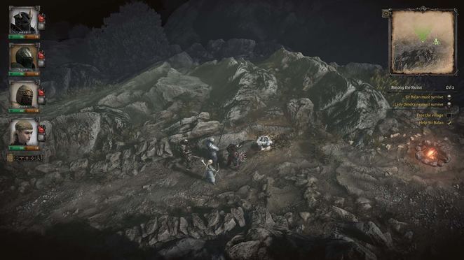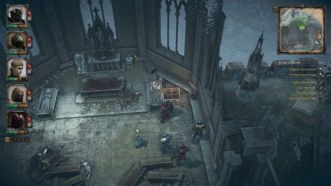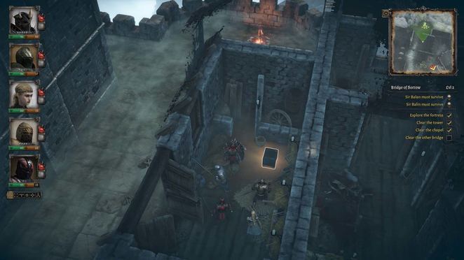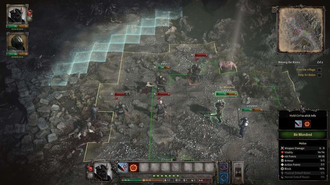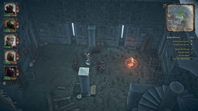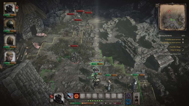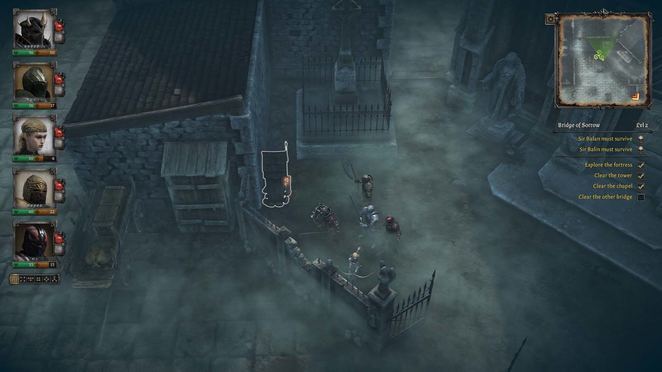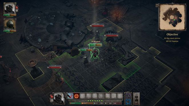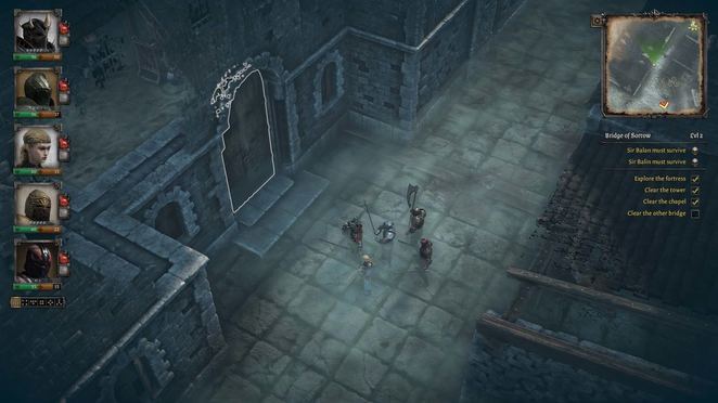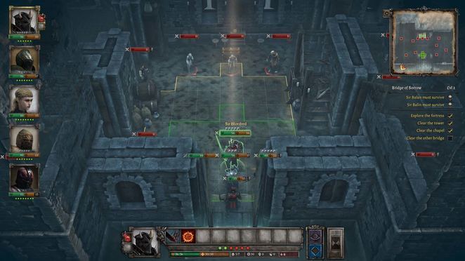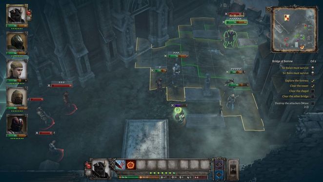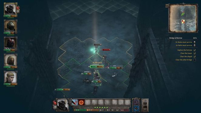 Lady Dindraine과 Sir Balin은 체력이 거의 없기 때문에 가능하면 피해를 입지 않도록 하십시오(Lady Dindraine도 갑옷이 없음). 다행히도 Balin 경은 함정을 설치하고 피해를 피하기 위해 몸을 숨길 수 있습니다. 케이 경과 모드레드는 몇 번의 공격을 받을 수 있는 HP와 방어구를 가지고 있으며 두 그룹으로 나누어야 합니다.