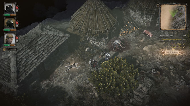 전투가 끝나면 Lady Dindraine이 파티에 합류합니다. 전장의 북서쪽을 확인하여 보물이 있는 오두막 밖에서 빛나는 통을 찾으십시오. 북동쪽을 확인하면 더 많은 보물을 줄 보물 상자를 찾을 수 있습니다.