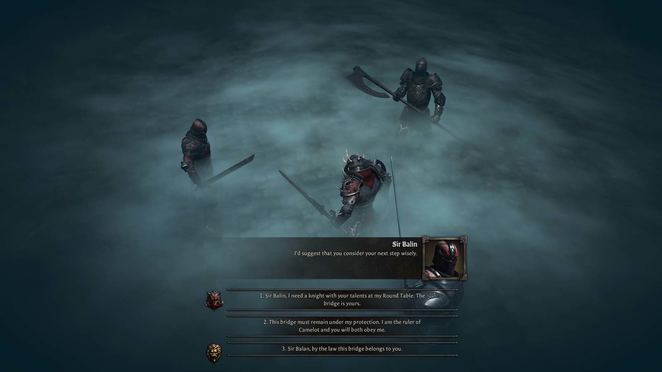 세 위치를 지운 상태에서 북쪽으로 이동합니다(또는 첫 번째/두 번째로 클리어한 경우 다른 다리로 돌아가서 북쪽으로 이동). 그런 다음 Balan 경이 다리를 포기하는 것을 거부하는 동안 Balin 경이 다리를 장악하도록 할 것입니다. 그러면 세 가지 선택이 있을 것입니다.