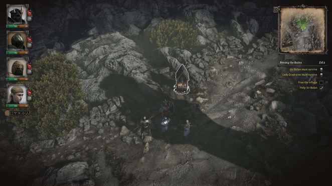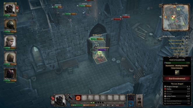 석궁병은 멀리서 공격하여 스콰이어가 피해를 입힐 수 있도록 갑옷을 벗겨냅니다. 은밀한 공격을 하려는 경우 Lady Dindraine을 Squires로부터 멀리하고 Sir Balin의 위치를 확인하십시오.