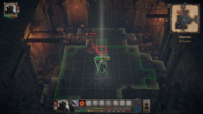 문을 통과하면 경비병과의 싸움이 시작됩니다. Mordred를 가드 근처로 이동하려면 마우스 오른쪽 버튼을 클릭한 다음 Strike를 자동으로 사용하려면 왼쪽 버튼을 클릭합니다(하단 메뉴에서도 선택할 수 있음). 경비병이 쓰러질 때까지 이것을 유지하십시오. 당신이 차례를 낭비하지 않는다면 그는 당신을 죽일 수 없을 것입니다.