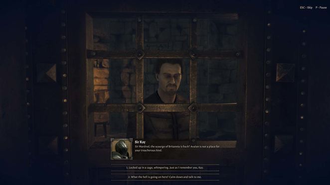감방을 나와 왼쪽으로 돌아서 끝에 있는 문에 도달하면 음성이 당신을 부르는 곳입니다. 케이 경 을 만나기 위해 감방 문과 상호 작용합니다 . 대화 후, 그를 풀어주는 대가로 그의 도움을 받기로 선택한 다음 문을 열면 그가 당신의 파티에 합류할 것입니다.