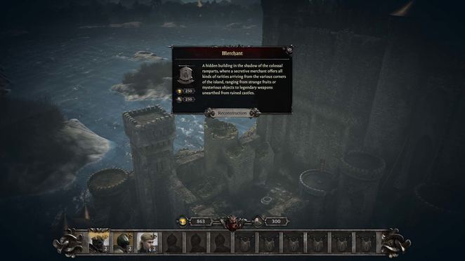 최소한 250골드와 250자원이 남아 있다면 상인 건설을 고려할 수도 있습니다. 아이템을 사고 팔 수 있을 뿐만 아니라 업그레이드를 통해 더 나은 재고에 접근할 수 있습니다.