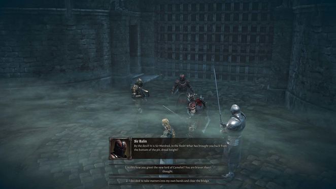 발란 경과 재회하고 그는 다시 당신의 팀에 합류할 것입니다. 길을 따라 가면 대화에 참여할 Sir Balin 을 만날 수 있습니다. 무슨 말을 해도 다리에서 언데드와 싸울 수 있는 문이 열립니다.