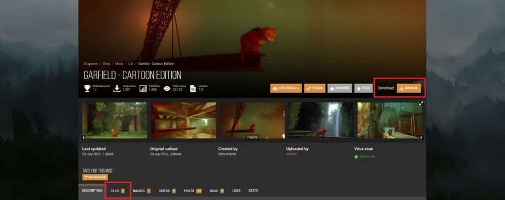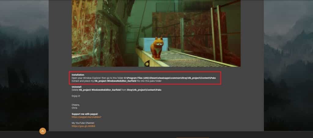Nexus Mods 로 이동하여 원하는 Stray mods를 다운로드하십시오. 각 모드에는 사용 방법에 대한 지침이 있습니다. 모드를 선택하면 파일을 다운로드하고 제공된 지침에 따라 게임에 적용해야 합니다.
