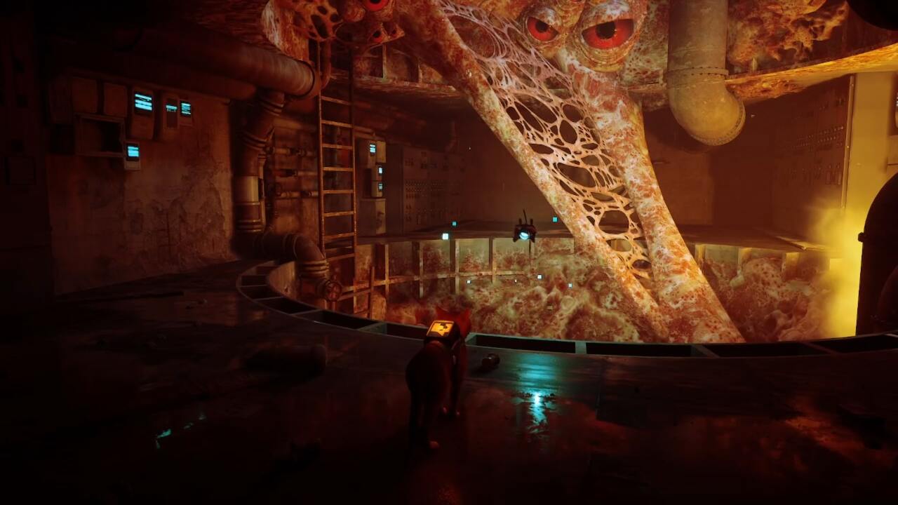 추적하기 가장 까다로운 Stray의 추억 중 하나인 Zurk Flesh를 찾으려면 빨간 눈과 Zurk 알로 가득 찬 긴 복도를 지나 잠시 우회해야 합니다. 복도 끝에 있는 큰 파이프 위로 뛰어내리되 파이프가 이어지는 곳을 따라가지 마십시오. 대신 반대쪽 벽을 따라 흐르는 더 작은 파이프로 건너뛰라는 메시지가 표시될 때까지 왼쪽의 차단된 부분에 접근합니다.