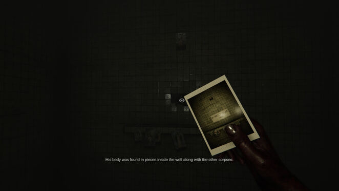 워키토키 신호가 가장 강하거나 클 때까지 걷고 주위를 둘러본 다음 카메라를 꺼내고(PC에서는 오른쪽 클릭 유지) 즉시 사진을 찍습니다. 그러면 몬스터가 나타나게 됩니다. 이것을 한 번 더 반복한 다음 신호를 다시 따르십시오. 이때 Russell 경관의 경찰 신고를 듣게 됩니다. 보고가 끝나면 신호를 따라 사진을 한 장 더 찍습니다.