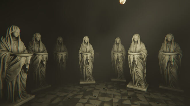 까지 전구를 계속 치십시오.바선반 중 하나에 나타납니다. 그것을 잡고 한 번 더 빛을 비추십시오. 주위를 둘러보면 동상을 찾을 수 있습니다. 사진을 찍으면 3개의 조각상이 생성됩니다. 신음 소리를 들으며 어느 것이 맞는 조각상인지 알아보고 사진을 찍어보세요. 지하실로 돌아올 때까지 이 과정을 반복하십시오.