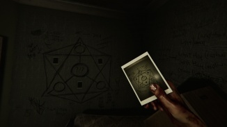 초상화의 사진을 찍고 그것을 조사하여 당신을 가리키는 남자를 찾으십시오. 잃어버린 문(시계가 사라진)을 찾기 위해 돌아서십시오. 사용연구 키문을 여는 것. 여기에서 TV 옆의 성냥갑과 상호 작용하여 찾으십시오."J" 키. 나중에 필요할 코드를 찾기 위해 벽에 있는 의식 상징의 사진을 찍습니다.