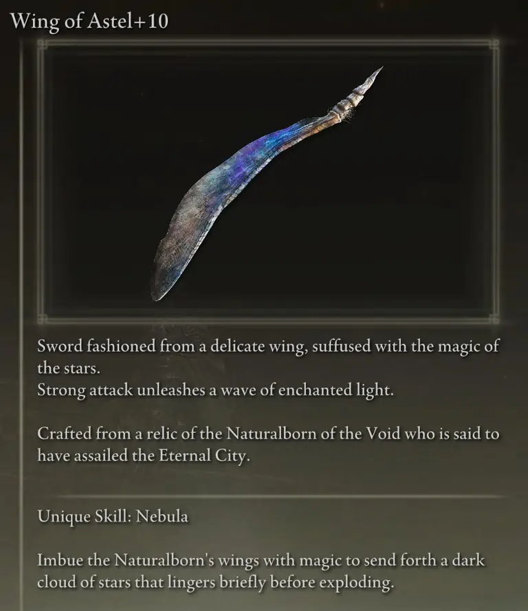 Stars of Ruin은 Comet으로 공격할 수 없는 매우 회피적인 적에게만 사용하거나 FP를 저장하기 위해 한 번의 공격으로 패배할 수 있도록 Stars of Ruin의 소량의 추가 피해가 필요한 경우에만 사용해야 합니다.