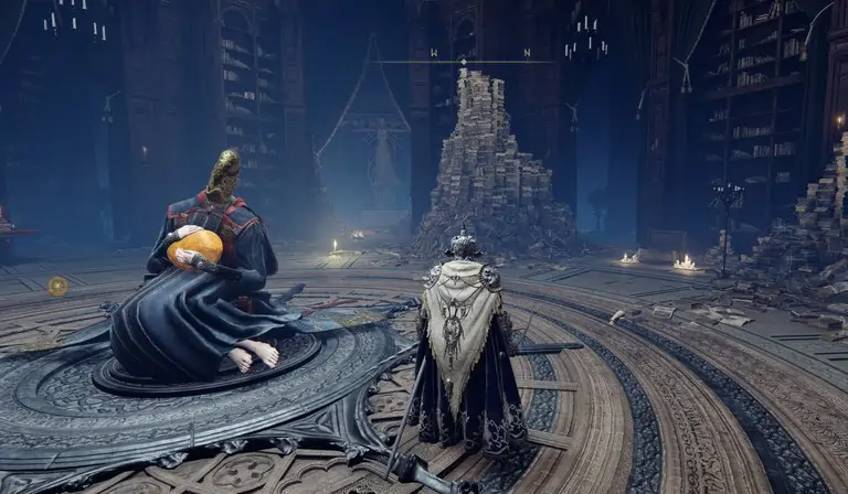 - 서원의 교회 남쪽에 있는 탑 외부의 제단에 Ranni에게서 얻은 Carian Inverted Statue를 배치하여 Inverted Carian Study Hall을 통과하십시오.
