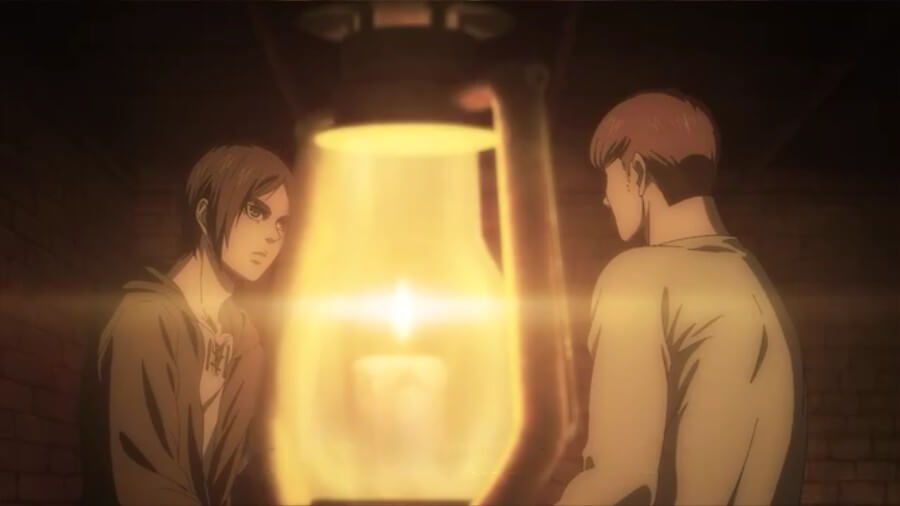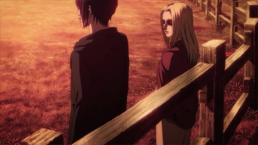 에렌에게 재검토를 촉구하는 히스토리아(이미지 출처: MAPPA Co., Ltd.).