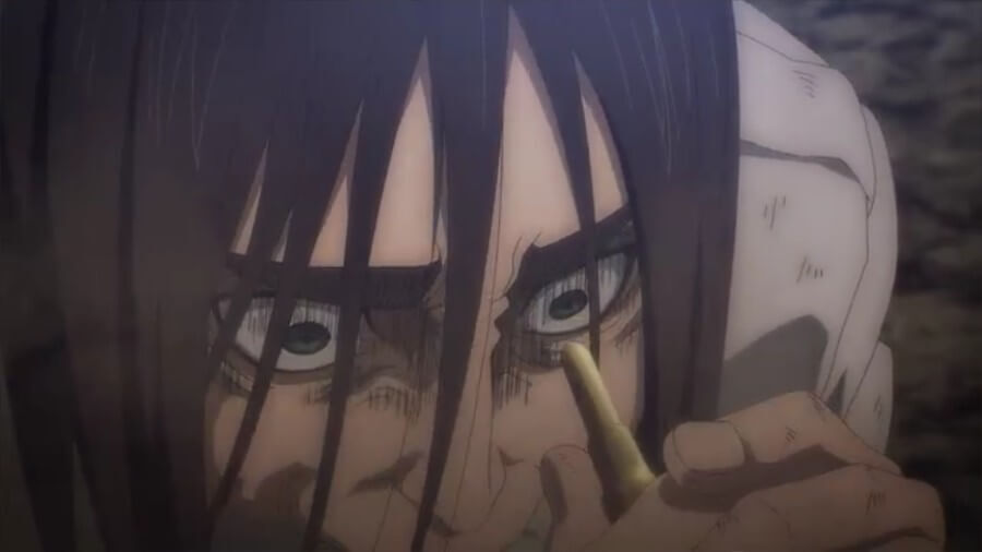 Eren은 그의 어머니 Carla를 잡아먹는 Titan Dina Fritz의 플래시백이 마음속으로 재생되면서 " 그들이 하나도 남지 않을 때까지 인류를 전멸시키고 세상에서 쓸어버릴 것입니다 ! ” 파이널 시즌의 '결론편'이 2023년에 방송된다는 그래픽으로 에피소드가 끝납니다!