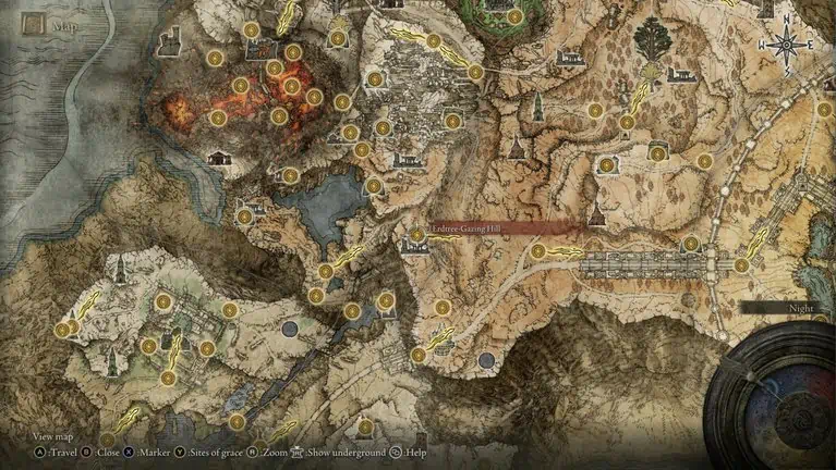 Shaded Castle은 Atlus Plateau의 다소 외딴 지역에 있습니다. 그곳에 가려면 근처에 있는 Erdtree Grazing Hill Lost Grace에서 들어갈 수 있는 계곡을 거쳐야 합니다.