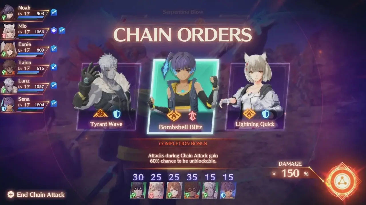 실시간으로 바를 채우기 위해 공격과 함께 충분한 콤보와 액션 역할을 사용하십시오. 라이벌의 체력 바가 거의 다 떨어질 때 사슬 바를 사용하십시오. 이 과정을 반복하면 특히 Ouroboros Chain Orders에서 충분한 클래스 점수를 얻는 데 도움이 됩니다.
