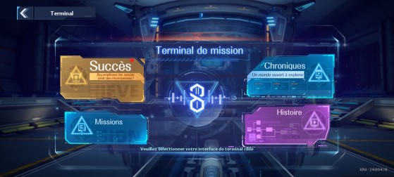 - Achievements : 완료해야 할 수많은 업적이 있으며 이를 통해 금과 어두운 수정을 얻을 수 있습니다. 액세스하려면 오른쪽 상단의 메뉴를 열고 "터미널"로 이동하십시오. 또한 스토리 모드에서 연대기, 임무 및 진행 상황을 확인할 수 있습니다.