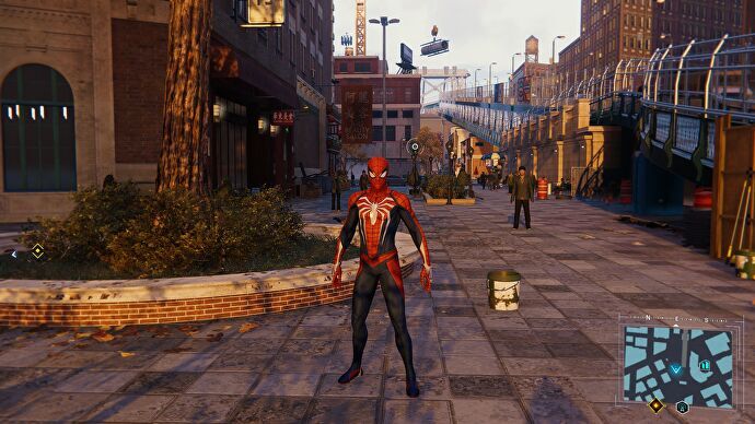 사실, Insomniac의 Big Apple 인수는 의심할 여지 없이 가장 잘생겼고 가장 밀도가 높은 도시 오픈 월드 중 하나이지만 PC 게임 업계에 전념하고 있습니다. 모든 옥상과 그래피티가 칠해진 골목길은 세심하고 손으로 만든 품질을 가지고 있으며 맞춤형 및 반 무작위로 생성 된 건물 인테리어의 혼합은 잘 차려 입은 세트가 아닌 사람이 사는 장소를 스윙하는 느낌을 유지하는 데 도움이 됩니다.