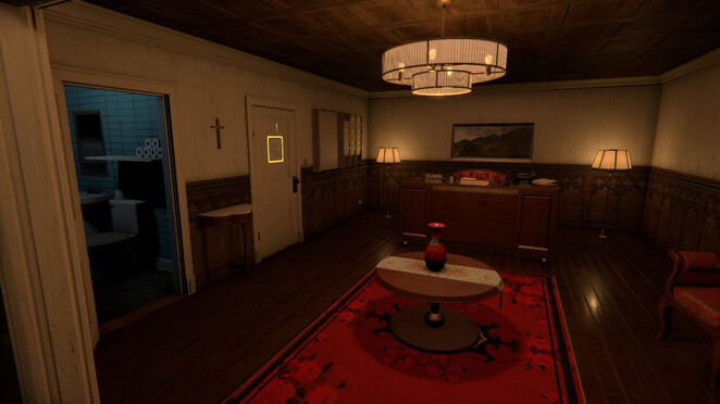 리셉션에 있는 동안 홀 문이 닫히고 잠겨 있는 것을 볼 수 있습니다. 그렇다면, 정문으로 향하면 낡은 아파트(일명 "헤로인 아파트")로 연결됩니다. 벽에 있는 화이트보드를 사용하여 나열된 항목을 순서대로 집으십시오(순서가 아닌 것은 집으실 수 없습니다).