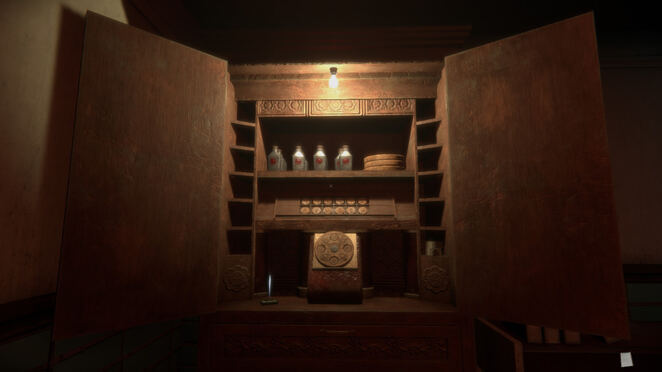 방부실에서 오른쪽 하단 찬장에 있는 금고의 조각상에서 찾은 숫자와 표시를 사용하십시오. 그렇게하면 얻을 것이다지하 열쇠.