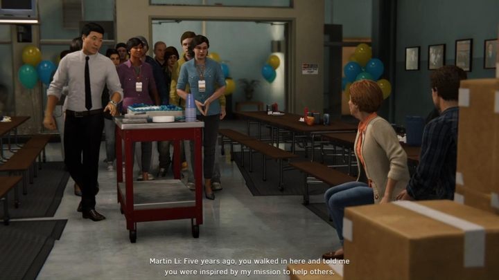 이제 시설의 다른 거주자들이 생일 케이크로 메이 숙모를 놀라게 할 컷신이 여러분을 기다립니다. 장면이 끝나면 다른 사람들과 대화할 수 있습니다. 준비가 되면 출구로 이동하면 미션이 종료됩니다.