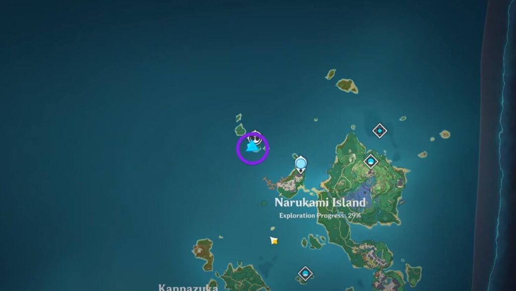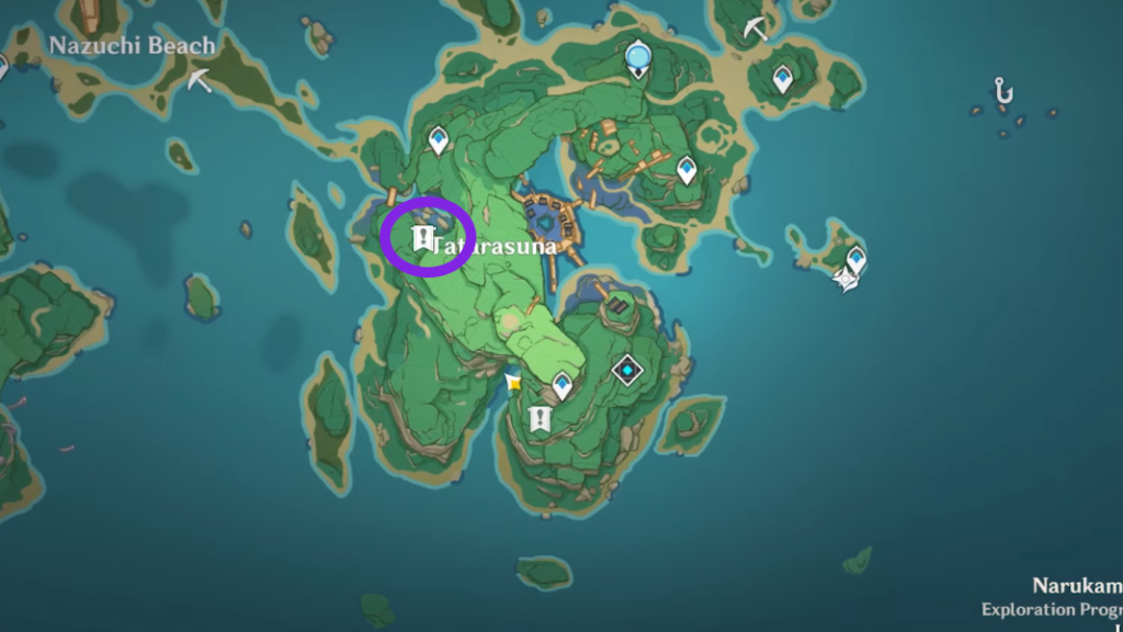 이 칸나즈카 신사는 타타라스나 남쪽에 위치하고 있습니다. 섬의 북동쪽 언덕에 도달해야 합니다. 거기에 도착하면 들쭉날쭉한 돌 같은 신사를 볼 수 있습니다. 첫 번째 것과 같은 방법으로 잠금을 해제하고 자원을 얻으십시오.