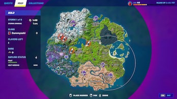 4개의 Capsule Corp 캡슐은 매치할 때마다 포트나이트 섬의 무작위 위치에 생성됩니다. 첫 번째 원이 위치를 표시하는 것처럼 지도를 확인하세요. 에픽게임즈, 구미오시