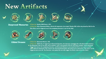 각 요소에는 전용 아티팩트 세트가 있습니다. 이 경우 Deepwood Memories는 플레이어가 Dendro 캐릭터를 위해 농사짓게 될 Dendro DMG 부스팅 세트입니다. Gilded Dreams는 Elemental Mastery 세트로서 어느 정도 가치가 있지만 특정 팀 구성에만 해당됩니다.
