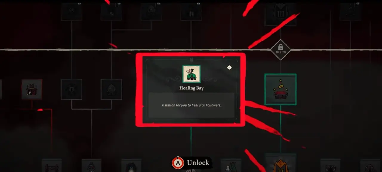 힐링 베이를 구입하는 것은 추종자의 치유를 돕고 회복 시간을 단축할 수 있는 좋은 방법입니다. 컬트 3레벨 업그레이드이며, 접근하기 위해서는 사전에 침낭 업그레이드와 대피소 업그레이드를 획득해야 합니다.