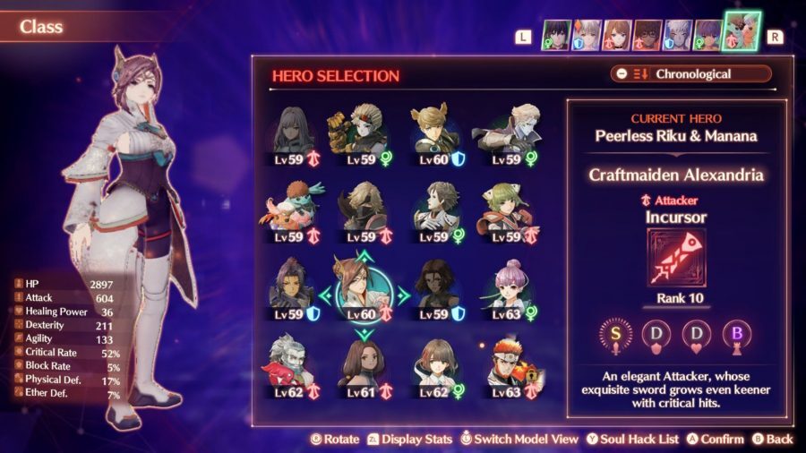 알렉산드리아를 꽤 일찍 만날 수 있지만 실제로 그녀의 영웅 퀘스트를 완료하려면 사전에 많은 레벨 업이 필요합니다. 알렉산드리아는 XC3 영웅 카테고리의 또 다른 매력으로, 퀘스트를 가치 있게 만드는 개성과 스타일로 가득 차 있기 때문에 그만한 가치가 있습니다. incursor 클래스는 너무 공격 중심적이라면 멋지다.