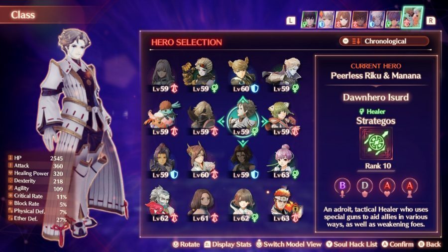 그렇다면 제노블레이드 연대기 3의 영웅 은 무엇입니까? 일곱 번째 바퀴 또는 전투의 또 다른 기둥인 영웅은 여정에서 만나는 사람들로 파티에 도움을 주기로 결정합니다. 그들은 전투에 참여하고 합류하면 파티원을 위한 많은 클래스 중 하나를 잠금 해제합니다. Xenoblade Chronicles 3 전투 의 복잡성에서는 한 번에 한 명의 영웅만 사용할 수 있지만 각 전투에 올바른 영웅을 사용하도록 적절하다고 판단되면 교체할 수 있습니다.