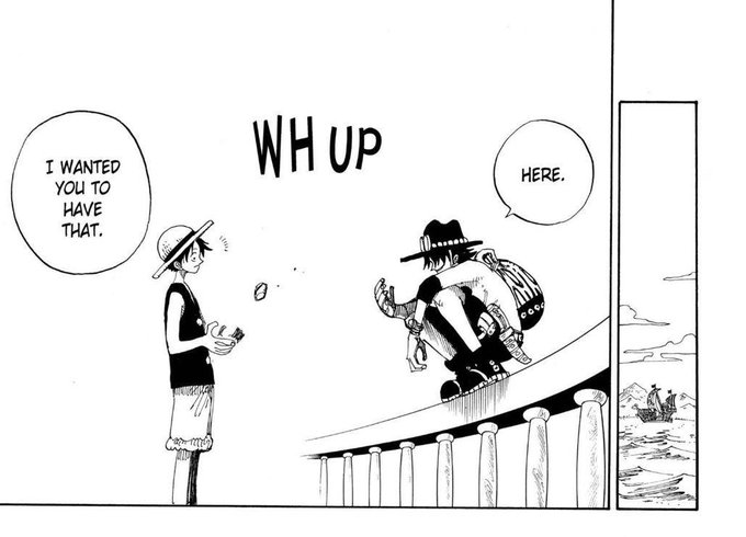 오랜 시간이 지난 후 우리는 다른 사람들이 끼어들지 않고 진정한 밀짚모자 상호 작용을 봅니다. 승무원은 오랫동안 혼자가 아닙니다. 나미와 루피는 우리의 반대편에 있습니다.