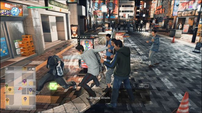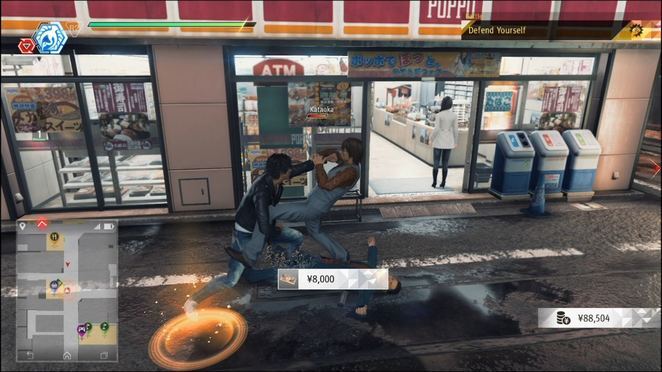 전직 변호사에게 있어 Yagami는 Kamurocho의 비열한 거리에서 자신의 일을 처리할 수 있습니다. 그는 크레인 과 타이거 의 두 가지 전투 스타일을 가지고 있습니다. 튜토리얼에서 설명했듯이 Crane은 많은 적군에게 효과적이며 Tiger는 일대일 싸움에 적합합니다. 전투 중 아래쪽 DPAD를 눌러 언제든지 두 스타일 사이를 전환할 수 있습니다. 전투의 BGM도 Yagami가 선택한 스타일에 따라 변경됩니다. 도시를 탐험하고 평범한 깡패를 다룰 때 크레인 스타일을 계속 사용할 수 있습니다. 타이거 스타일은 강하고 단일한 상대를 상대로 빛납니다.