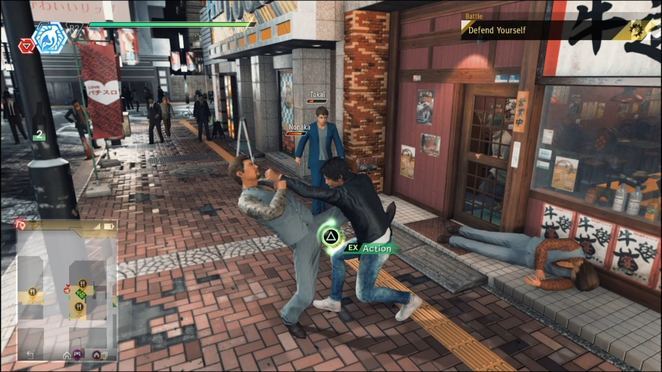 도시의 현지인과 친구가 될 수 있는 EX 액션입니다. 그들의 우정 측정기를 완전히 최대화하고 그들의 위치 근처에서 싸우게 되면, 도움이 될 EX 게이지 부분이 있을 때 삼각형 프롬프트를 누르십시오. 그들은 항목을 던질 것이고 당신은 화면에서 올바른 버튼 프롬프트를 눌러 그것을 잡아야 합니다. 성공적으로 완료되면 Yagami는 그에게 건네진 항목에 따라 불행한 적을 처벌합니다.