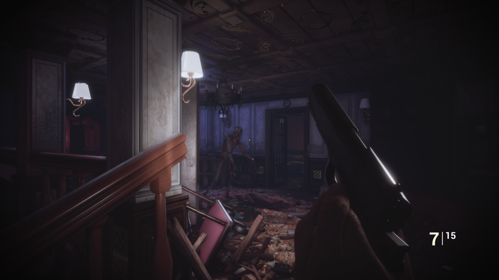 게임의 첫 번째이자 가장 큰 섹션은 독점적으로 호텔에서 설정되며 탐색 및 역추적에 오랜 시간을 할애하게 됩니다. 쇠사슬로 잠긴 문을 볼 수 있습니다. 문을 제거할 무언가를 찾으면 다시 돌아와야 하고, 특정 층에는 엘리베이터 문이 막혀 있고, 무기를 찾기 전에 적들이 길을 막고 있습니다. 여기에는 총을 통한 전투가 있으며 궁극적으로 찾을 수 있는 무기가 4개 있지만 나는 이것을 전투 헤비 게임이라고 부르지 않을 것입니다. 일반 적 유형은 두 가지뿐이지만 보스 싸움은 세 가지입니다.