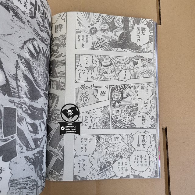 근처에는 Tashigi와 Punk Hazard에 의해 구조된 아이들이 있는 해군 사령부가 있습니다. SWORD의 Helmeppo도 Seraphim에게 가서 Koby를 구해줄 것을 요청합니다. 새로운 섬의 해안에서 루피, 쵸파, 징베, 쥬얼리 보니는 헤어져 말라가고 있고, 여자는 베가펑크의 섬인 에그헤드에 있다는 것을 밝힙니다.