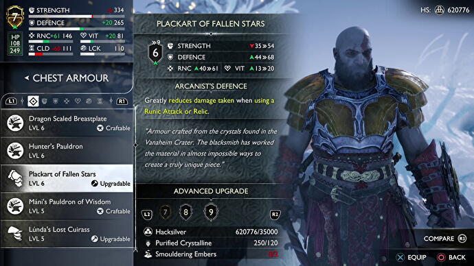 게임 자체에는 설명되어 있지 않지만 God of War Ragnarök에서 갑옷 조각을 형상 변환 하려면 레벨 9까지 완전히 업그레이드해야 합니다 . 이것은 허리 갑옷과 손목 갑옷을 사용하는 것이 가장 쉽지만 가슴 갑옷은 완전히 업그레이드하고 형상 변환을 잠금 해제하는 데 가장 오래 걸립니다. 최대화하려면 Smoldering Embers와 같은 희귀 자원이 필요하기 때문입니다.