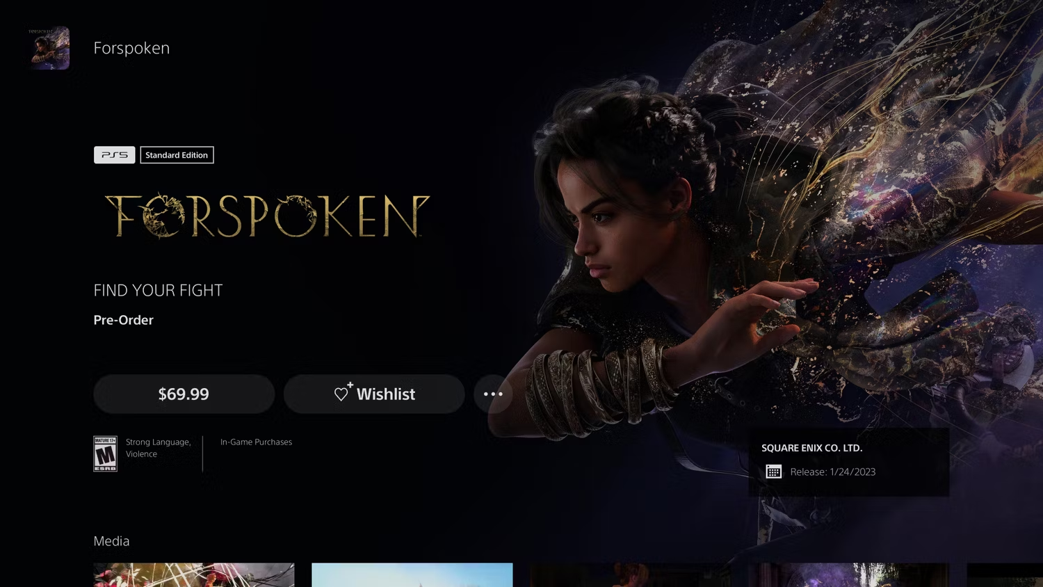 플레이스테이션 스토어에서 데모를 찾는 것은 일부 사람들에게는 머리를 긁적일 수 있습니다. 첫 번째 단계 는 사전 판매 메뉴 또는 검색 창을 탐색하여 Forspoken 의 Playstation 페이지를 찾는 것입니다 . 거기에서 즉시 옵션을 통해 $69.99에 선주문에 액세스하고 플레이어의 위시리스트에 게임을 추가하고 대체 옵션으로 이어지는 세 개의 점을 표시하는 버튼을 사용할 수 있습니다.